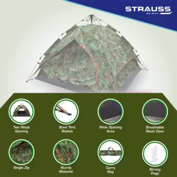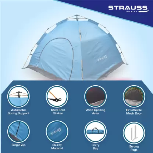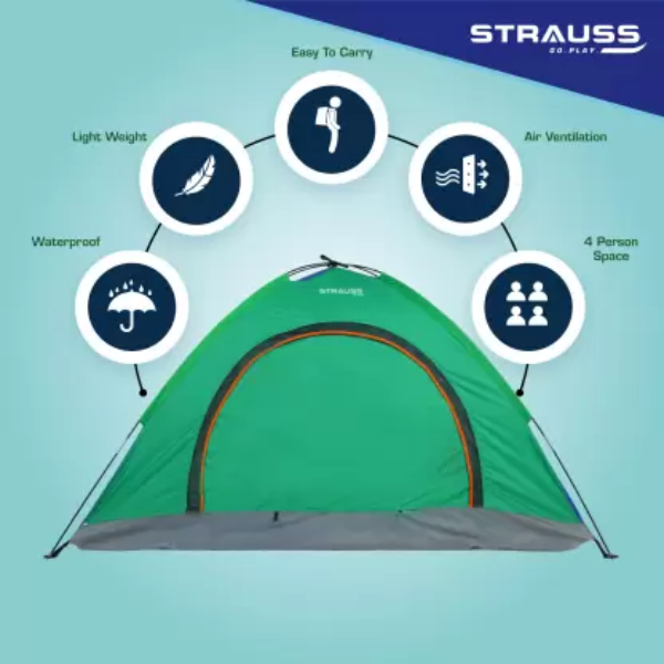 Home  ⇨  Strauss 4 Person Waterproof Portable Camping Tent | Useful for Outdoors, Picnic, Hiking Tent – For All Age Group (Multicolor)